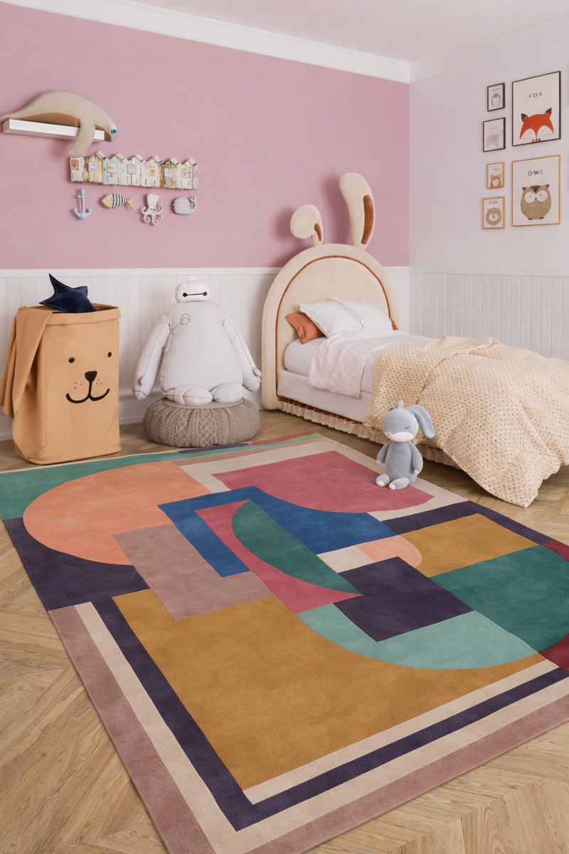 Ręcznie przędzona wełna nadaje dywanowi unikalną, lekko strukturalną powierzchnię z subtelnym połyskiem – znak prawdziwego rzemiosła. Jednocześnie materiał działa termoizolacyjnie, odpycha zabrudzenia i zapewnia przyjemny klimat w pomieszczeniu.