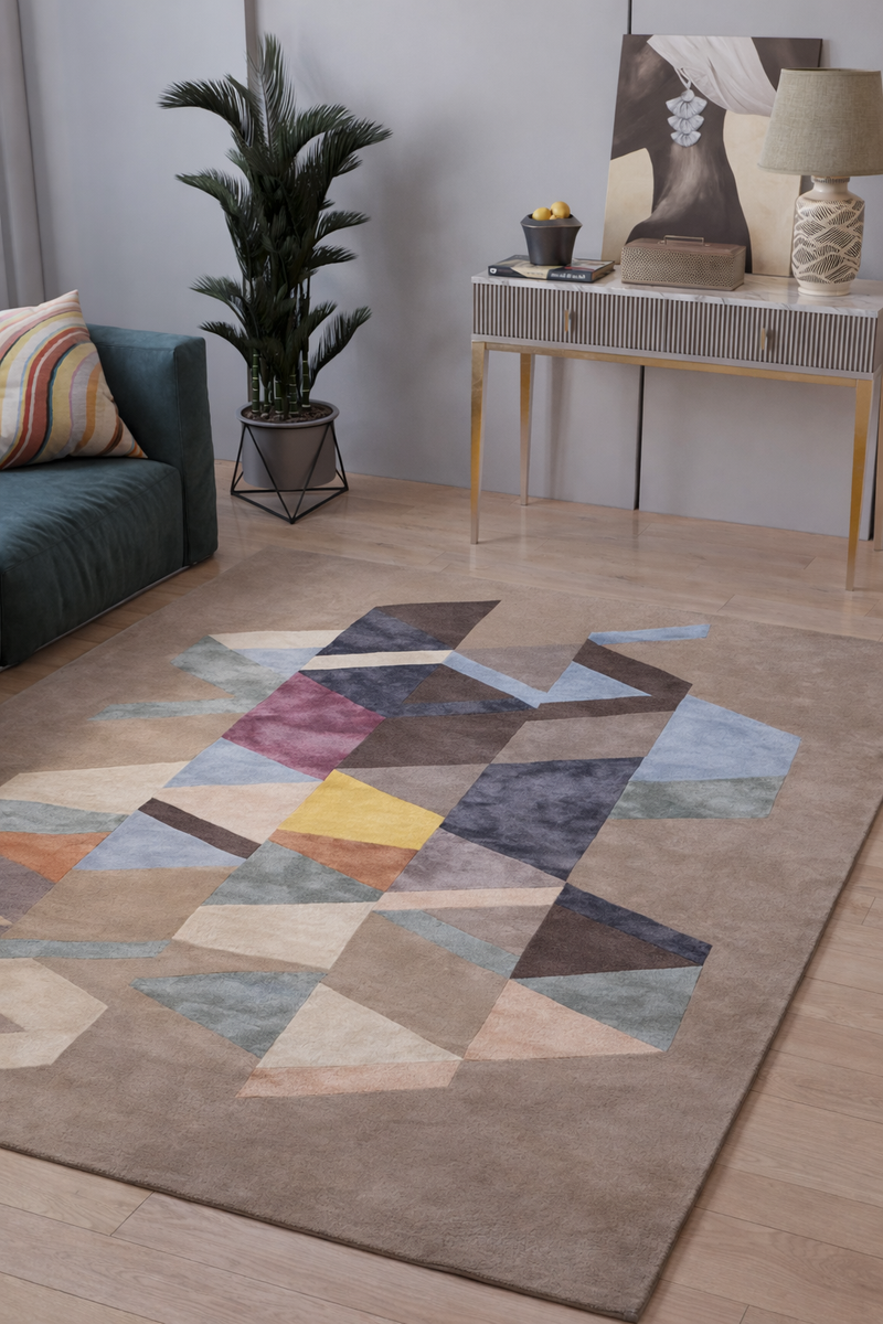 Ręcznie przędzona wełna nadaje dywanowi unikalną, lekko strukturalną powierzchnię z subtelnym połyskiem – znak prawdziwego rzemiosła. Jednocześnie materiał działa termoizolacyjnie, odpycha zabrudzenia i zapewnia przyjemny klimat w pomieszczeniu.