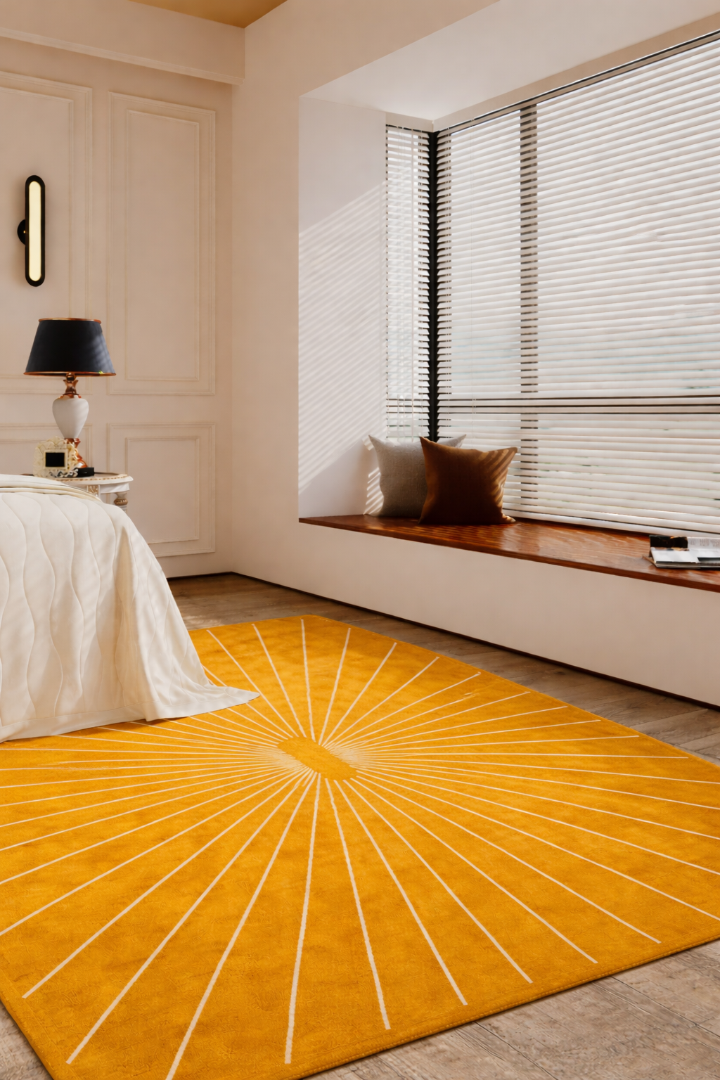 Ręcznie przędzona wełna nadaje dywanowi unikalną, lekko strukturalną powierzchnię z subtelnym połyskiem – znak prawdziwego rzemiosła. Jednocześnie materiał działa termoizolacyjnie, odpycha zabrudzenia i zapewnia przyjemny klimat w pomieszczeniu.