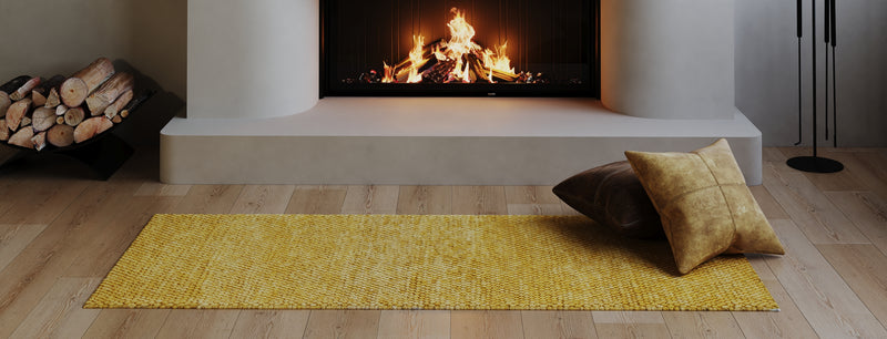 Ręcznie przędzona wełna nadaje dywanowi unikalną, lekko strukturalną powierzchnię z subtelnym połyskiem – znak prawdziwego rzemiosła. Jednocześnie materiał działa termoizolacyjnie, odpycha zabrudzenia i zapewnia przyjemny klimat w pomieszczeniu.